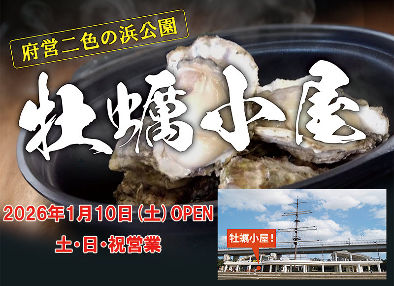 大阪府営二色の浜公園冬の風物詩「牡蠣小屋ブルーテラス」がオープンしました。
